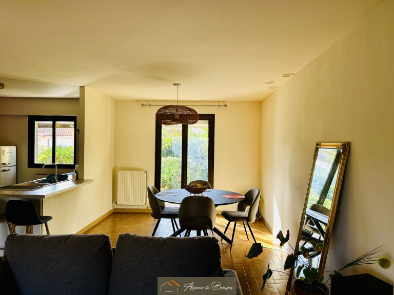 Maison 2 faces R+1 avec jardin et garage de 20 m2, composée en rez-de-chaussée d'un grand hall d'entrée, une chambre climatisée, une salle d'eau, un toilette, une cuisine, un grand séjour / salle à manger, et au 2ème étage deux chambres, une salle d'eau.