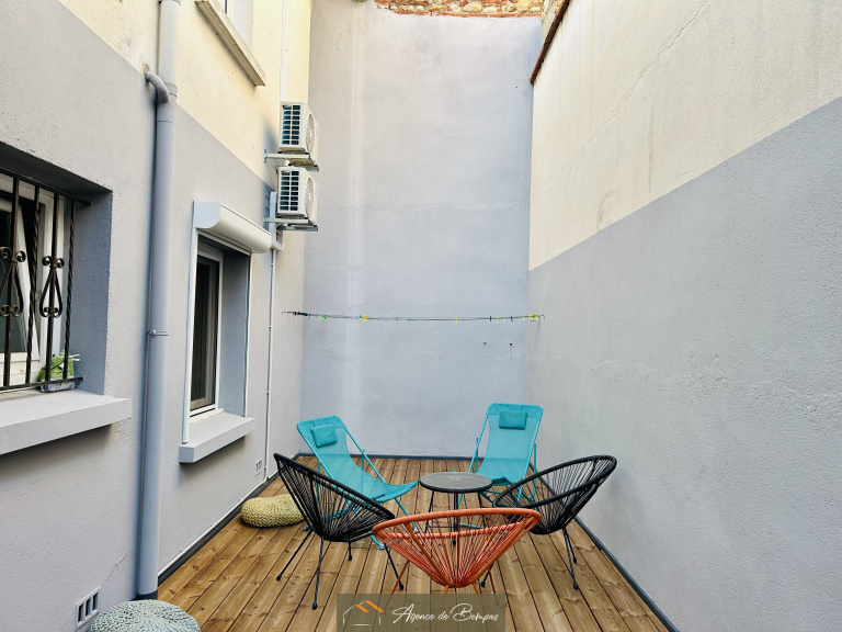Au 1er étage d'une petite copropriété de 4 lots bien entretenue, appartement climatisé de 84 m2 habitables composé de deux chambres, un séjour / salle à manger, une salle d'eau, un toilette et une cuisine ouverte sur une grande terrasse.