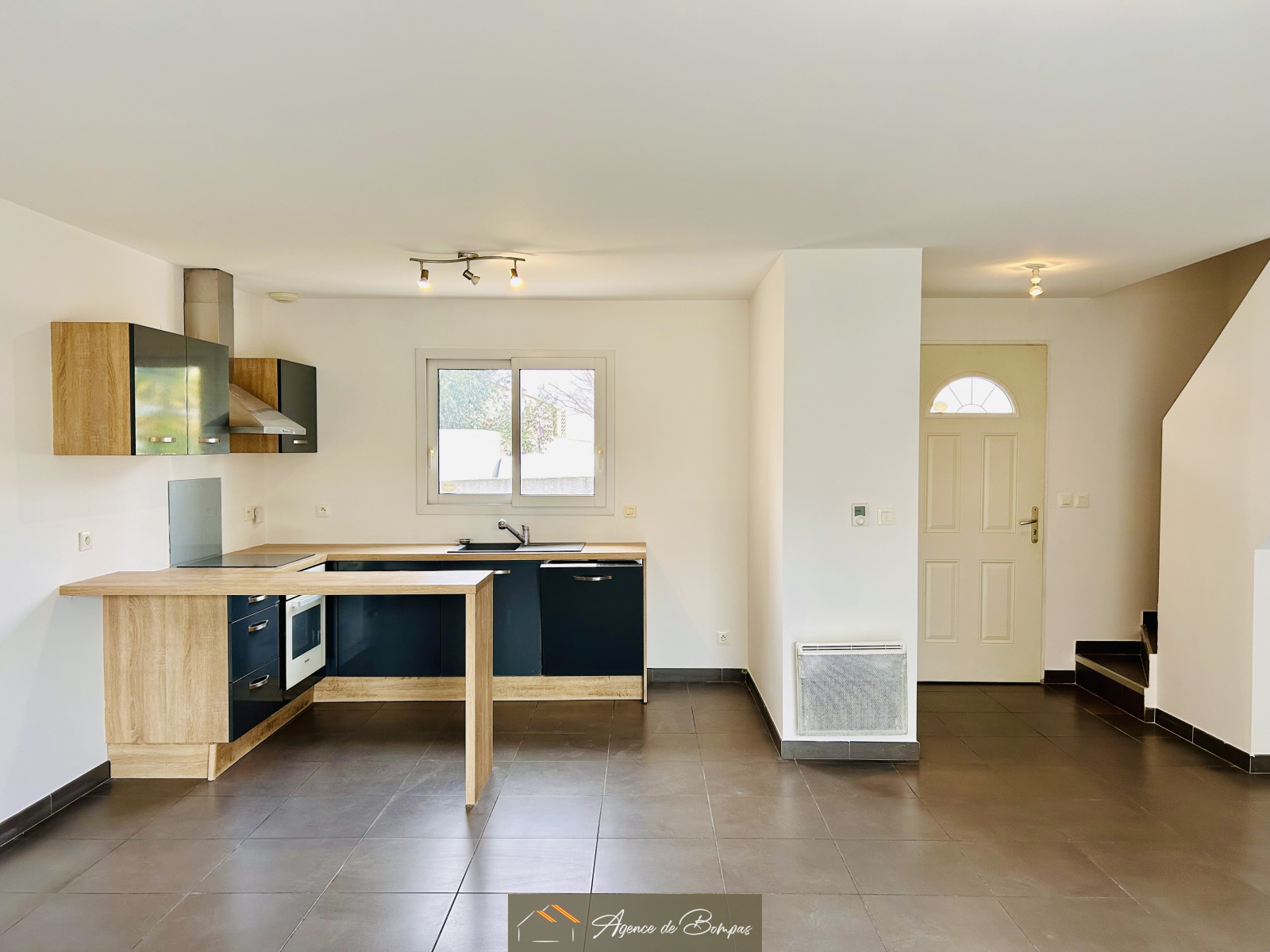 Villa deux faces R+1 de 2014 d'une surface habitable de 99 m2, composée en rez-de-chaussée d'une entrée en placard, une cuisine ouverte sur un grand séjour climatisé avec accès à un jardin, une salle d'eau avec toilette, au 1er étage trois chambres dont deux avec placard et une avec terrasse, une salle de bains et un toilette.