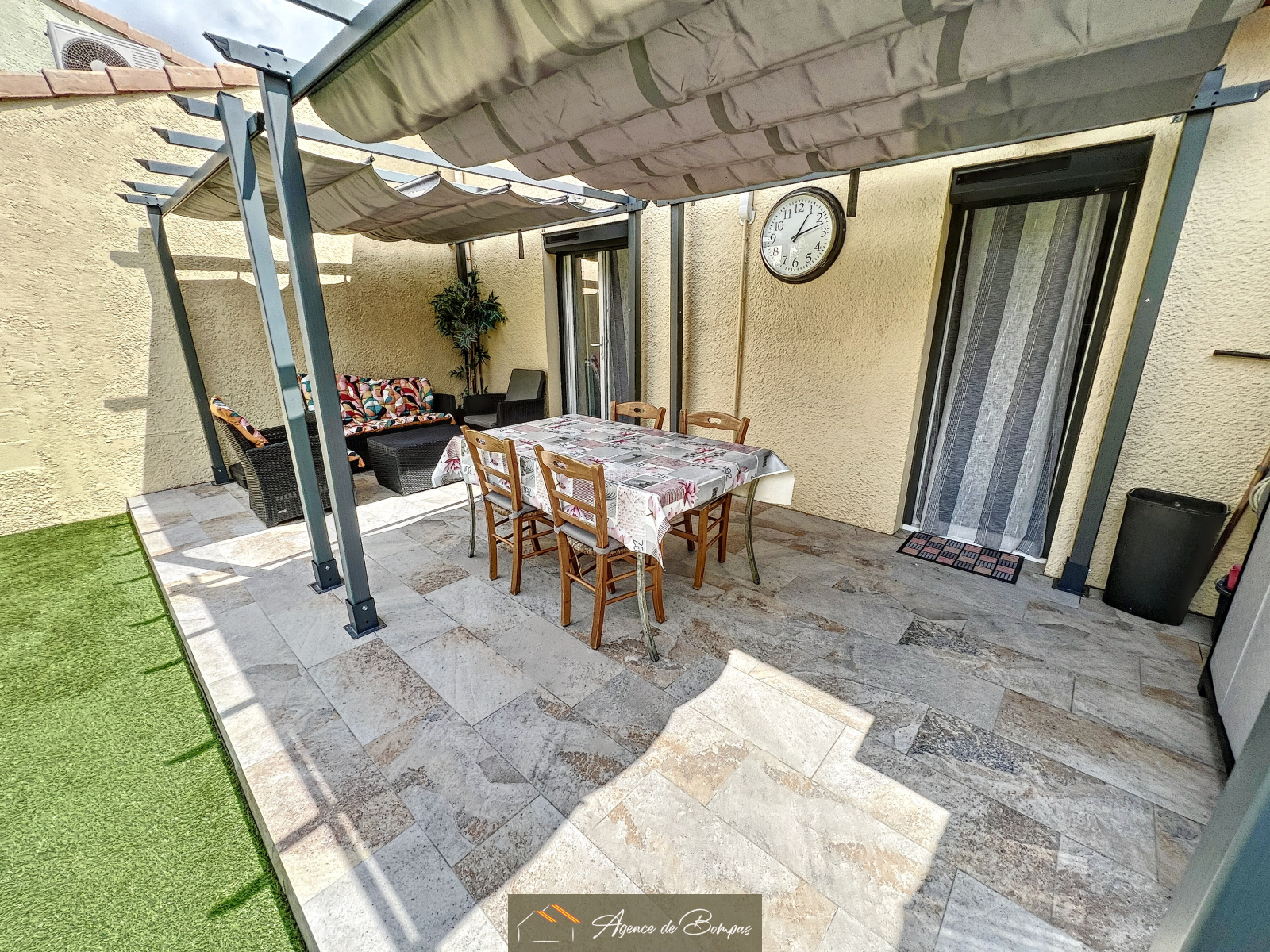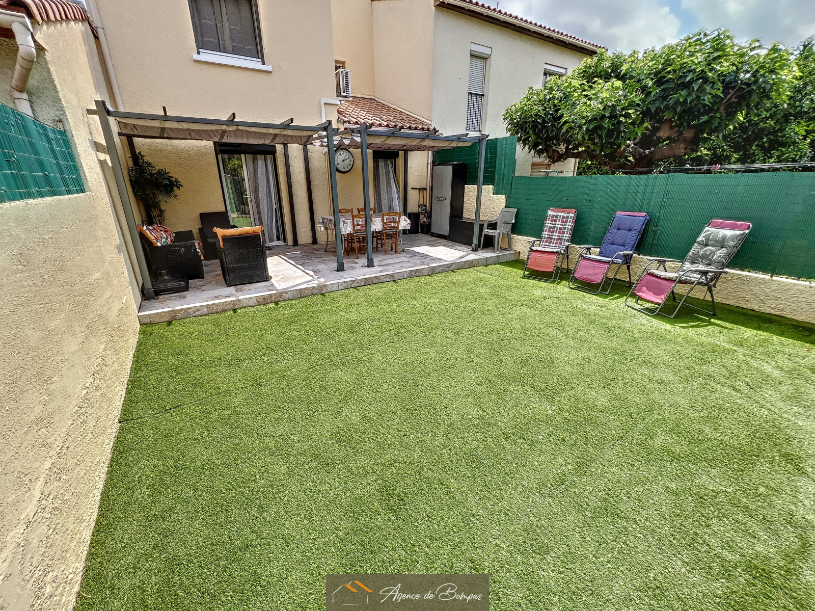 ENTREE - SEJOUR SALON AV CUISINE OUVERTE ENV 34 M2 DONNNANT SUR TERRASSE ET JARDIN AV PELOUSE SYNTHETIQUE -1 CHAMBRE -TOILETTE AV LAVE MAIN