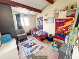 REZ DE CHAUSSEE : ENTREE - CUISINE SEPAREE - SEJOUR SALON 39.29 M2 AVEC CHEMINEE INSERT DONNANT SUR TERRASSE ET JARDIN PLEIN SUD SANS VIS A VIS - GARAGE AMENAGE (ACTUELLEMENT SALLE DE JEUX OU POSSIBILITE CHAMBRE OU AUTRES ET COIN BUANDERIE ) BAIE AVEC VOLET ELECTRIQUE -