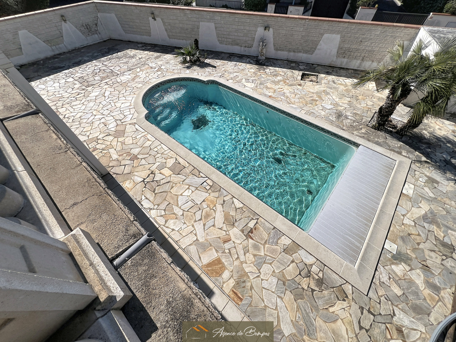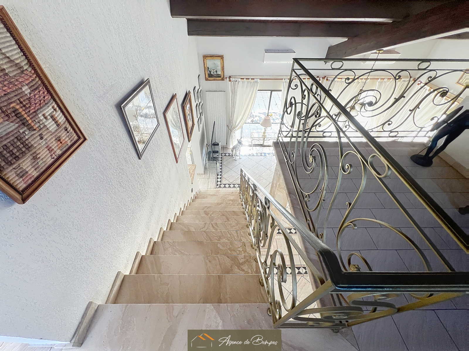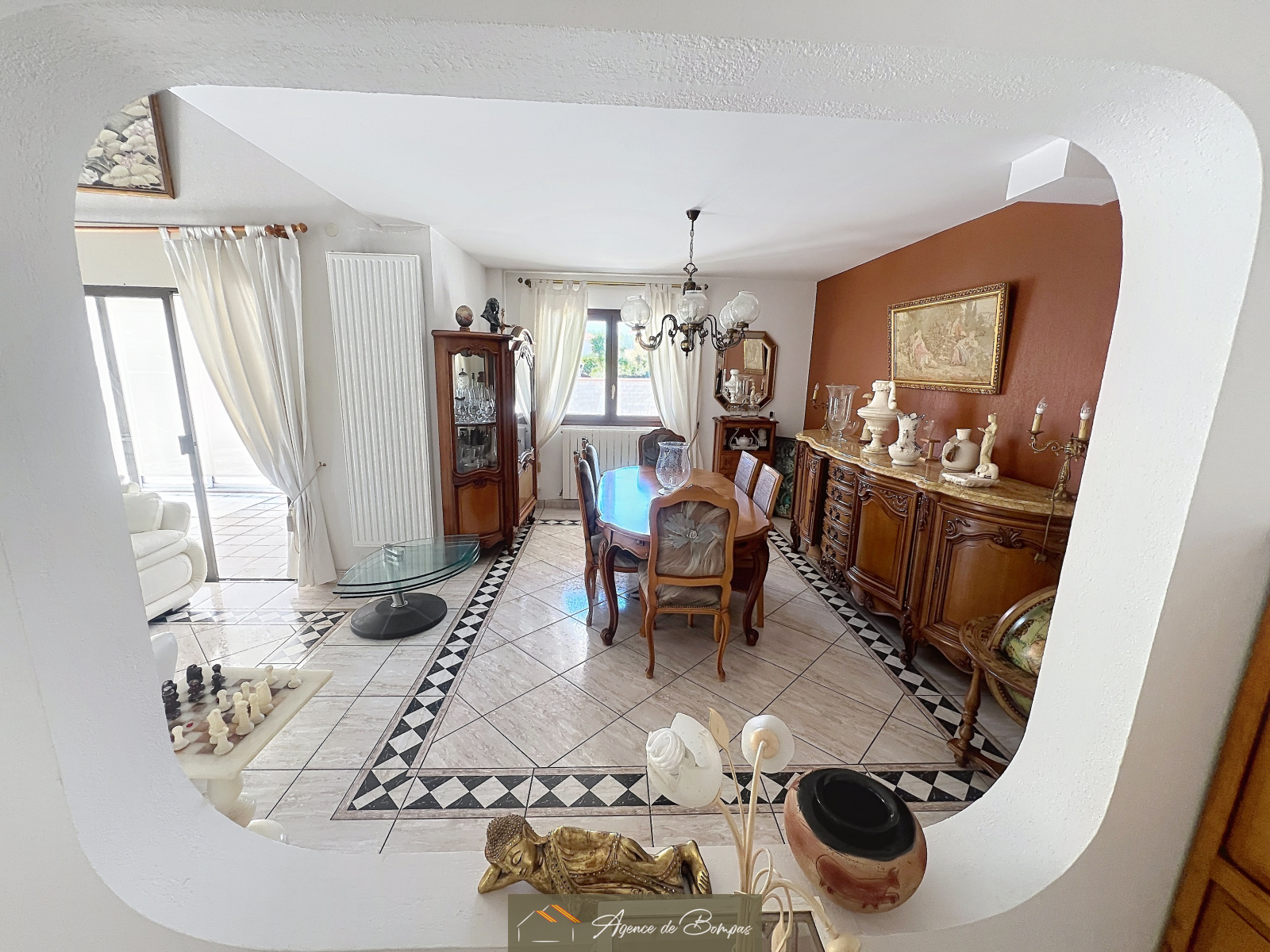 ENTREE DESSERVANT SEJOUR SALON AV PLAFOND MANSARDEE ENV 59 M2 DONNANT SUR VERANDA BIOCLIMATIQUE 20 M2 - CUISINE DINATOIRE 21.45 M2 DONNANT SUR GRANDE TERRASSE AVEC COIN BARBECUE ET PISCINE PLEIN SUD