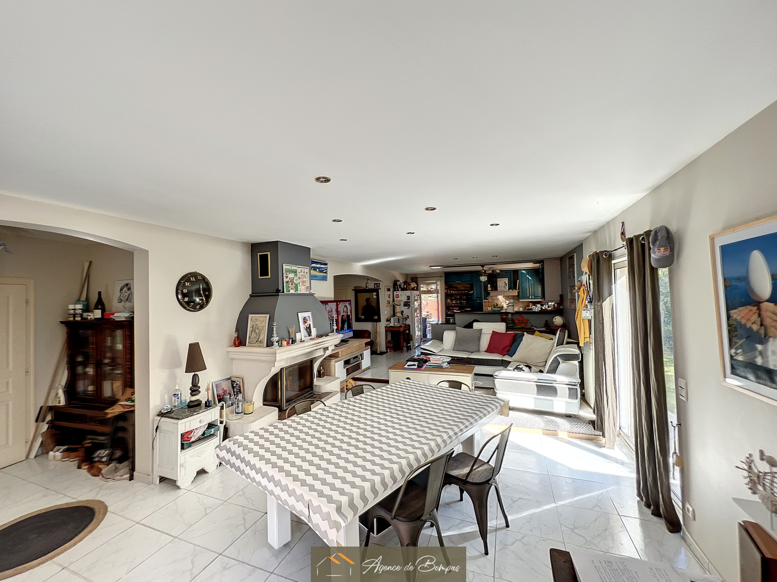 ENTREE - SEJOUR SALON AV CHEMINEE CUISINE OUVERTE ENV 47 M2 ACCES SUR TERRASSE - PISCINE COQUE ET CUISINE D ETE AVEC UNE PIECE CLIMATISEE - 1 CHAMBRE AV DRESSING ENV 20 M2 -1 SALLE DE BAINS -TOILETTE