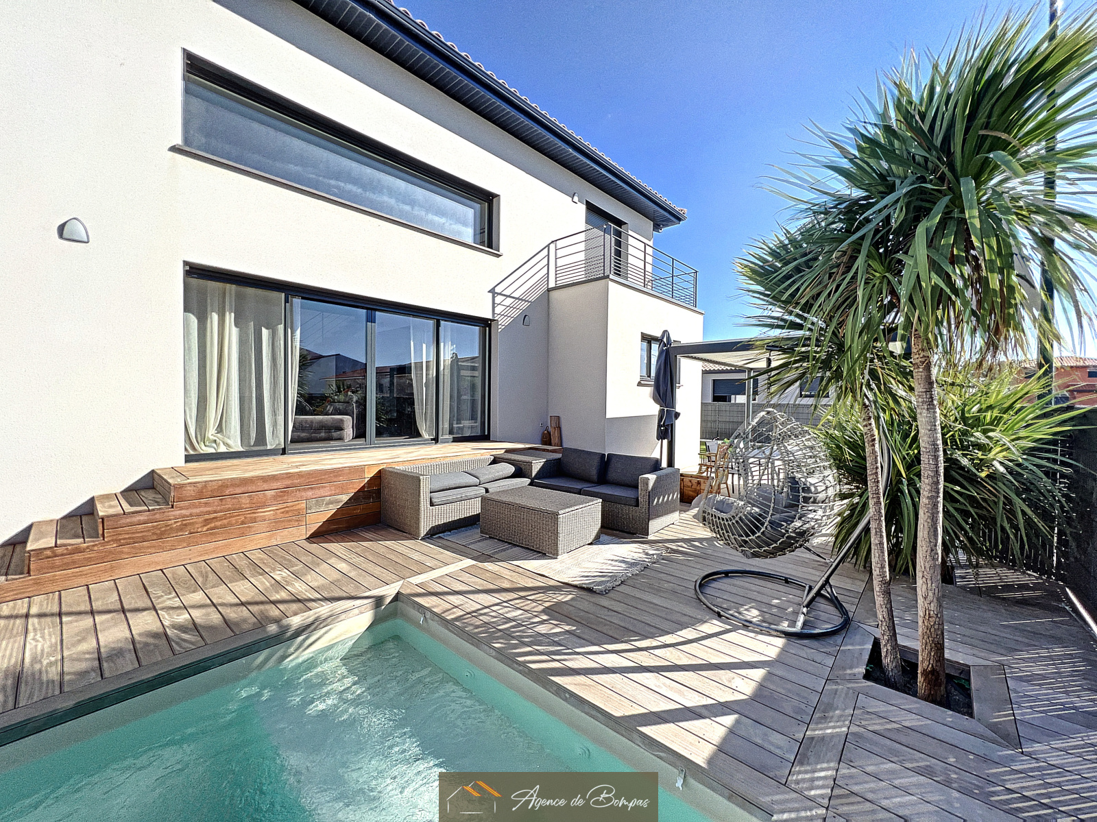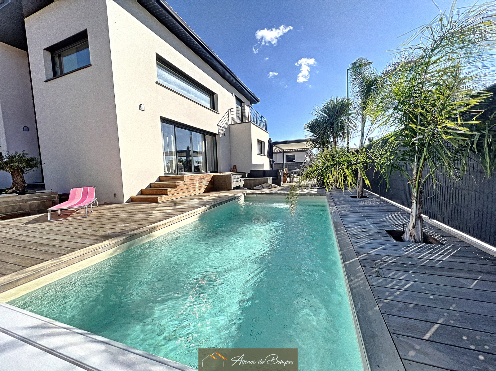 PRESTATIONS DE QUALITE POUR CETTE VILLA CONTEMPORAINE DE 2022 EN 3 FACES ENV 150 M2 HBTS SUR 409 M2 DE TERRAIN ARBORE - RT 2012 - PISCINE COQUE 7X3 TRAITEMENT AU SEL - PERGOLA -CASOT