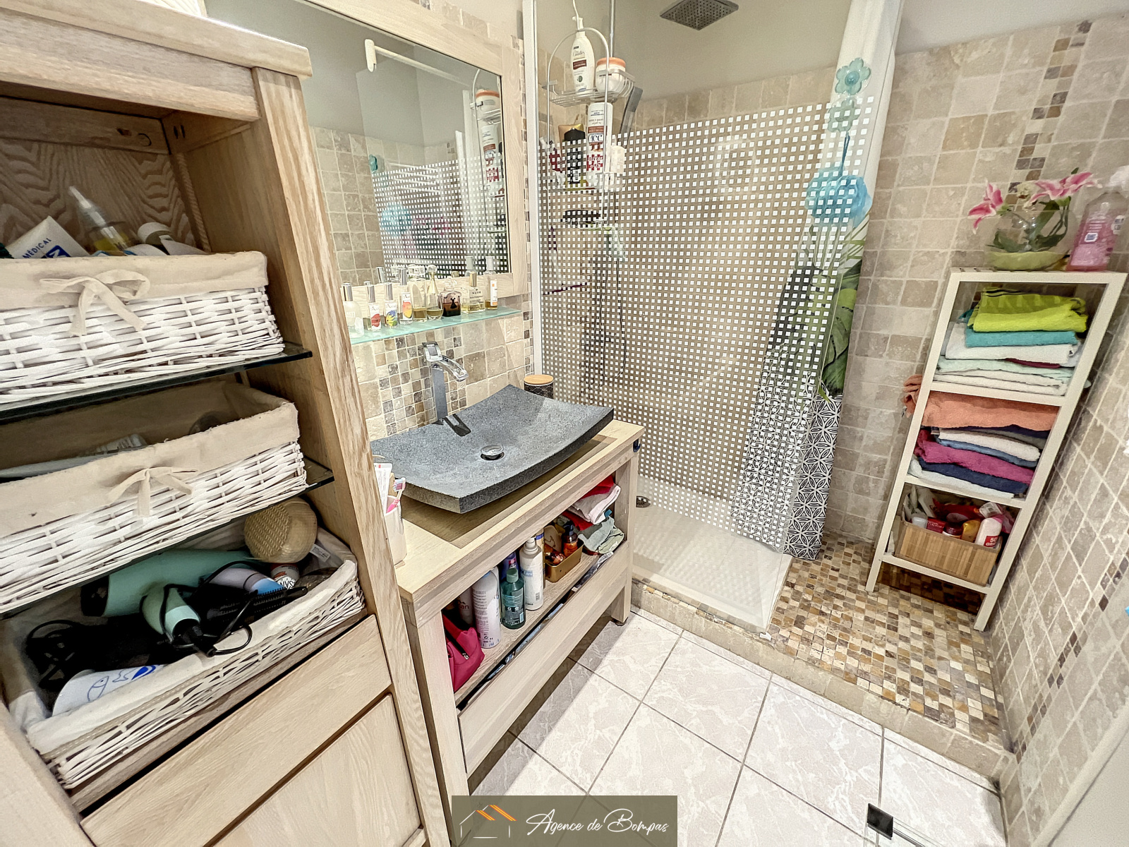 ENTREE - SEJOUR SALON AV CUISINE OUVERTE ENV 34 M2 DONNANT SUR TERRASSE ET CUISINE ETE (FOUR A PIZZA ) - 3 CHAMBRES -SALLE D EAU - TOILETTE AV LAVE MAIN -