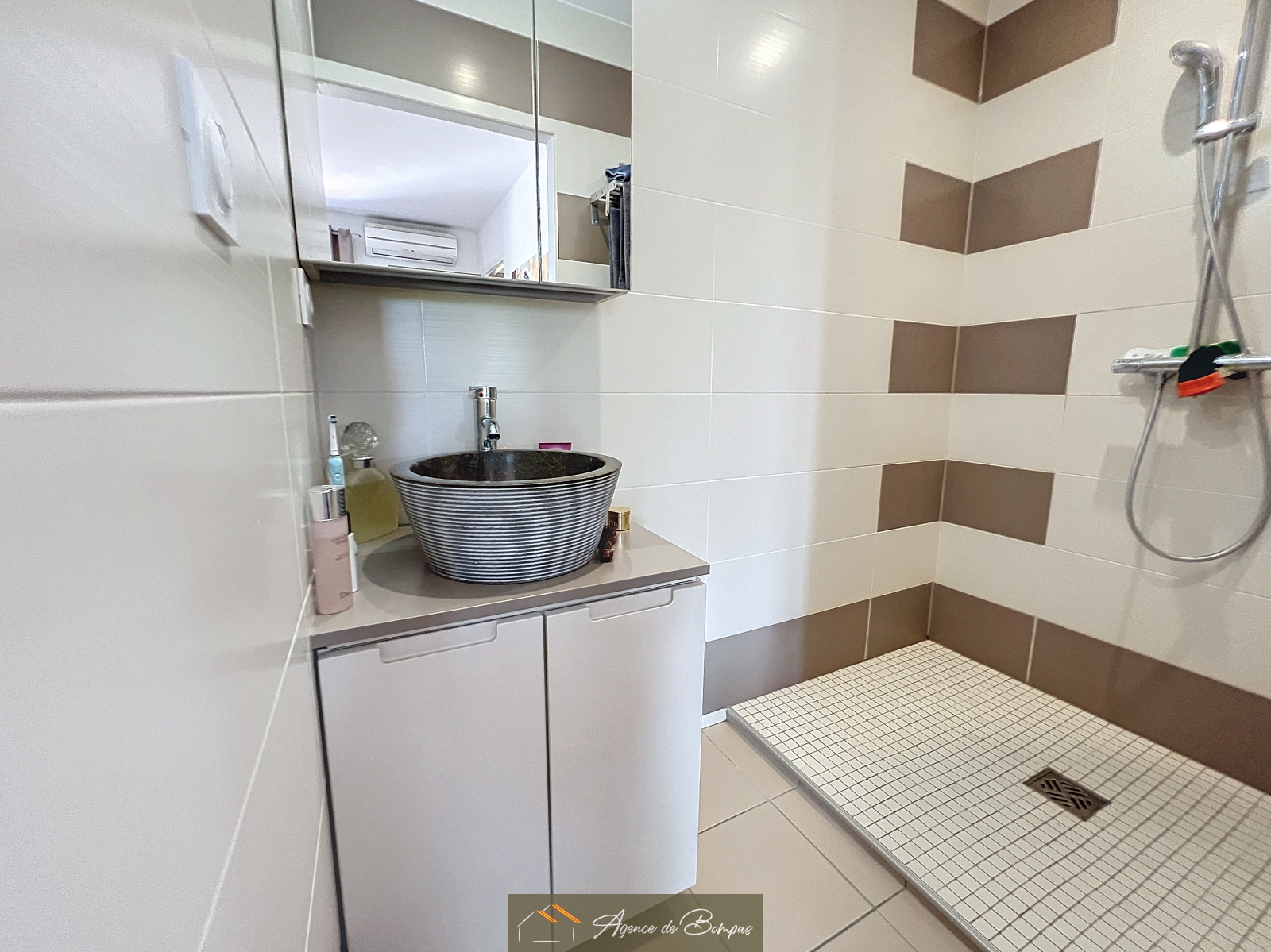 ENTREE -SEJOUR SALON CLIMATISE AV CUISINE OUVERTE 63 M2 DONNANT SUR JARDIN ET PISCINE EXPOSITION PLEIN SUD -1 SUITE PARENTALE CLIMATISEE AV DRESSING ET SALLE DEAU ACCES TERRASSE NORD - 2 CHAMBRES AV PLACARD CHAUFFAGE ELECTRIQUE -SALLE D EAU AV TOILETTE - CELLIER - TOILETTE INDEPENDANT -