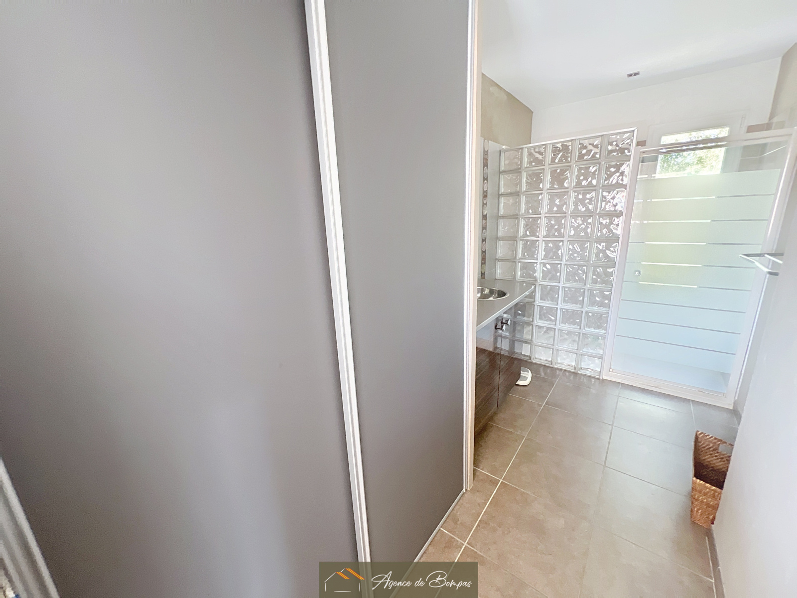 ENTREE -SEJOUR SALON CUISINE OUVERTE ENV 66 M2 AV CHEMINEE INSERT DOUBLE FACE DONNANT SUR TERRASSE CARRELEE - CUISINE D ETE - JARDIN PLEIN SUD ET PISCINE MACONNEE LINER PVC ARME - UNE SUITE PARENTALE 13 M2 DRESSING ET SALLE D EAU - GARAGE 20 M2 -TERRASSE AV PERGOLA BIOCLIMATIQUE ENV 16 M2 -TOILETTE INDEPENDANT